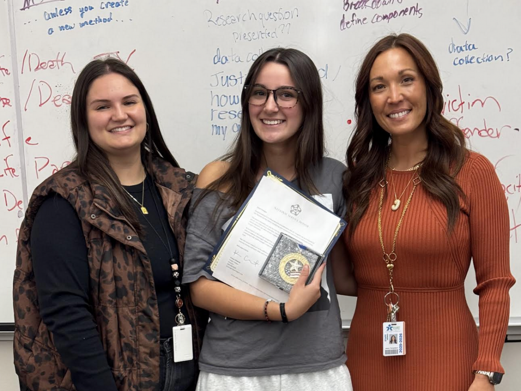Guidance Counselor Amanda Martin, Award Recipient Keyla Paniagua, Prinicipal Dr. Jeena Templeton