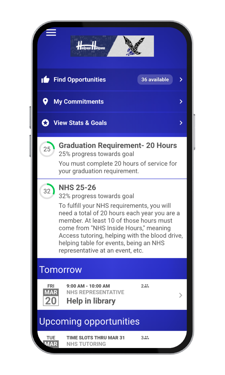 “We were using paper forms. Since we’ve started using Helper Helper, so many things have improved. It’s much easier to keep track of students’ community service hours, we have one central location to promote opportunities, and it saves tons of time tracking hours.”