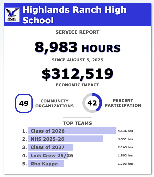 With thousands of service hours completed each year and a streamlined system supporting both staff and students, Highlands Ranch High School continues to build a strong culture of community engagement.