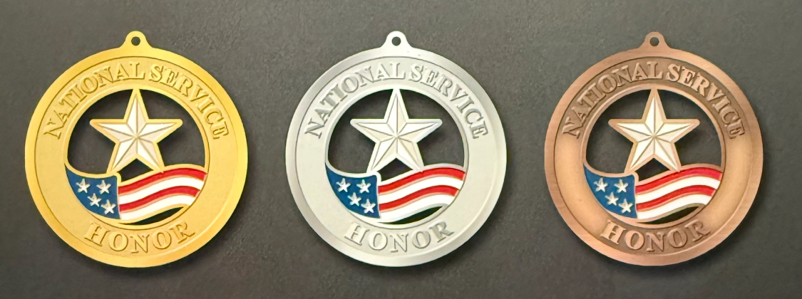 The National Service Honor is a verified, prestigious award program modeled after the PVSA. It recognizes students, families, and individuals for their community service hours completed over a 12-month period—or across a lifetime.